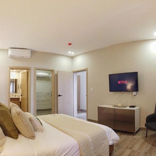 El complejo cuenta con habitaciones climatizadas con acabados de primera calidad y mobiliario exclusivo, que se complementa con otros servicios como, Smart TV, Baño privado con vistas, conserje 24h, y mucho más.